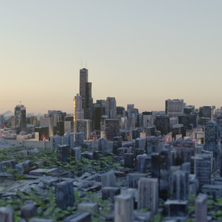Putting this portion of the work aside for future discussion, I then moved on to try and plot out some looks for the quarantined city of Chicago. Our idea for Chicago is that only a small portion of the city is used, walled off from any outside presence. I found a very low poly (and rather janky) version of Chicago online and downloaded it for use.